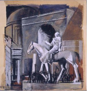 La “trinità” pittura-muro-messaggio seduce da sempre l’immaginario collettivo. Trinità che, a partire da metrature superiori alle pareti di casa nostra, ci invita a sfogliare il Bignami del nostro subconscio alla ricerca delle intuizioni primitive che, come il minatore Ciàula di Pirandello, vagano nel sottosuolo buio della nostra mente. A Partire dalle pitture rupestri degli uomini delle caverne, la pittura murale ha sempre occupato uno spazio importante in tutti i “capitoli” della storia dell’arte. E tali realizzazioni, se ubicate in luoghi pubblici, sono sempre state motivate dall’intenzione di lanciare messaggi a tutta la collettività, senza distinzioni di classe. Senza distinzione di classe erano infatti concepiti gli affreschi medievali raffiguranti episodi del Nuovo e del Vecchio Testamento, dipinti nelle chiese per insegnare la Bibbia agli analfabeti. Senza distinzione di classe erano le effigi dei ricercati che, sempre nel medioevo venivano dipinte sulle facciate dei palazzi comunali affinché tutti i cittadini ne memorizzassero meglio i tratti, il vestiario e il crimine. E senza distinzione di classe erano, a maggior ragione, i dipinti murali (a secco o a fresco) concepiti a scopo propagandistico da regimi dispotici, primo fra tutti quello fascista, il quale costruì la sua estetica sul recupero del lessico figurativo giottesco in chiave statalista e monumentale, al punto di spingere Mario Sironi a redigere, nel 1933, il “Manifesto della pittura murale” [fig.1, Mario Sironi “Cavallo e cavaliere”, 1935].