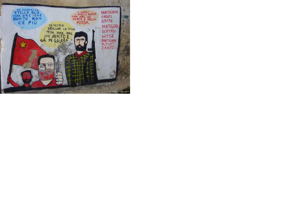 Per tornare alla suddetta trinità pittura-muro-messaggio, possiamo aggiungere che quanto più il messaggio è aperto a varie interpretazioni, tanto più verrà rivestito di valenze simboliche a seconda del fruitore e sarà, perciò, atto ad entrare direttamente in relazione con il Ciàula che vaga dentro di noi. Ben diverso effetto sortirà invece laddove il messaggio è già stato vestito dall’inequivocabile pubblicità o propaganda. Un po’ quello che succede a Bologna quando ci soffermiamo qualche decina di secondi davanti a una pittura murale di Blu (www.blublu.org) per confrontare il nostro pessimismo col suo nichilismo, e quando, aspettando l’autobus, non ci accorgiamo neanche che, nel cartellone pubblicitario davanti a noi, la Conad promuove l’offerta della nostra birra preferita.