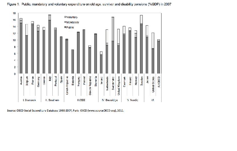 Il sistema pensionistico italiano è il più espanso di tutti i Paesi OCSE. La figura in basso è lampante: il pilastro pubblico assorbe il 16% del PIL in Italia (circa il 50% delle uscite correnti del bilancio statale). Livelli simili e comunque inferiori li hanno solo Austria, Svezia e Francia, con condizioni di PIL e debito chiaramente diverse dalle nostre. Una delle principali ragioni per cui le pensioni sono un tema delicato in Italia è che solo il 20% di queste supera i 1,000 euro mensili . Se si guarda però nelle pieghe del sistema, mentre la pensione media dei lavoratori dipendenti si aggira intorno ai 13,500 euro l'anno, quella degli ex dipendenti ENEL (ad esempio) è di 28,800, del personale di volo (leggi Alitalia) 52,400, degli ex dirigenti privati 55,719 [rapporto INPS 2011]. Senza contare le relative reversibilità e gli abusi delle invalidità civili. I mostri dell'ex sistema retributivo li pagano i lavoratori attuali, con i loro salari fermi da anni e le loro Gestioni Separate. Cosa significa 'non si toccano le pensioni'? Si toccano, eccome. Si toccano però quelle giuste. Si tassano maggiormente, ad esempio, quelle sopra i 5,000 euro mensili. O si elimina la tredicesima per queste. I proventi si reinvestono nell'educazione secondaria superiore e universitaria. O si comincia a bilanciare lo squilibrio tra spesa pensionistica e spesa per la disoccupazione. In Italia, questo equilibrio è inchiodato a 50,8% vs. 2% della spesa totale per il welfare. Lo stesso rapporto in Germania è 36,5 e 6,3; in Spagna 38,7 e 12,5. Se 'patto intergenerazionale' deve essere, patto intergenerazionale sia. Ma senza ipocrisie, cari compagni.